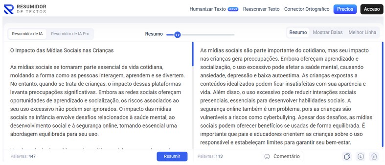 Link da ferramenta: https://www.resumidordetextos.net/br/resumir-texto