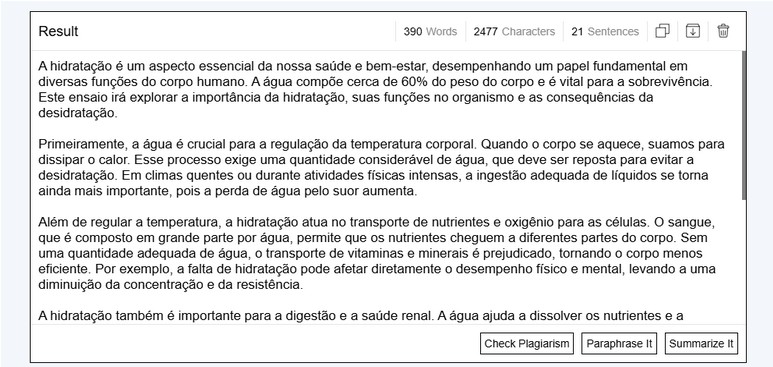 Agora, preste atenção ao ensaio gerado para reunir ideias e perspectivas. Você também deve revisar como a ferramenta estruturou as frases e tentar fazer o mesmo.
