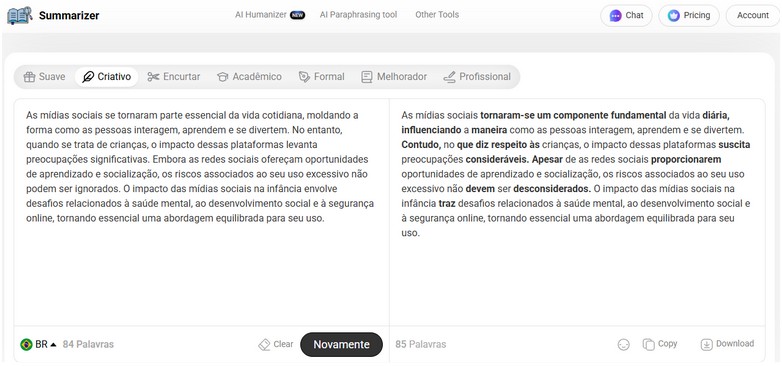 Link da ferramenta: https://www.summarizer.org/br/parafrasear-texto